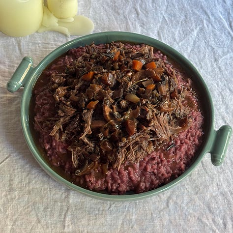 A slow braise, a glossy risotto, and dessert waiting in the fridge