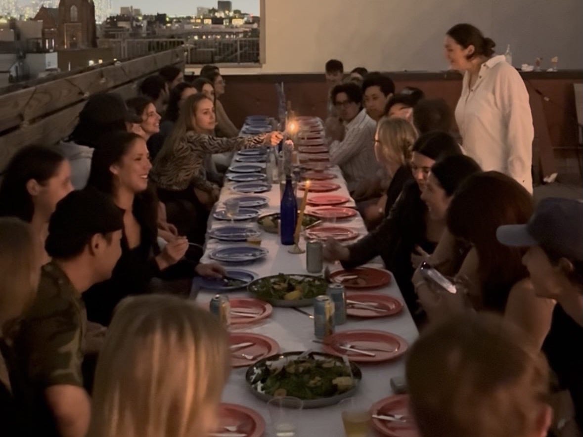 People want something to do with their hands the second they walk in. A drink gives them that, and it instantly lowers the temperature of the room. Wine, a batched cocktail, something non alcoholic that doesn’t feel like an afterthought. It doesn’t need to be complicated. Similarly, I love that my friends at Heirloom Supper Club put out name tags at larger dinners. If you’re hosting a group of strangers, it’s a super effective way to get the ball rolling right out of the gate and take pressure off the first interaction.